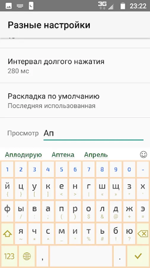 Settings / (System) / Language & Input / Virtual Keyboard / Keypad Management / Ru7Pro Keyboard