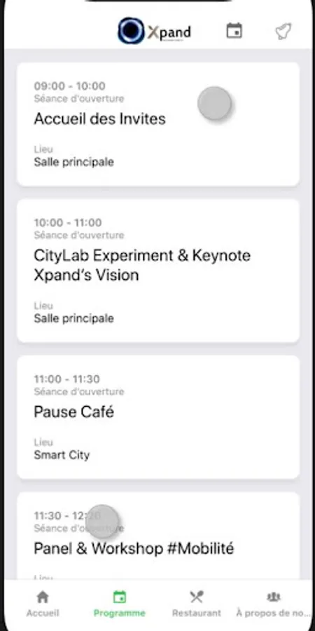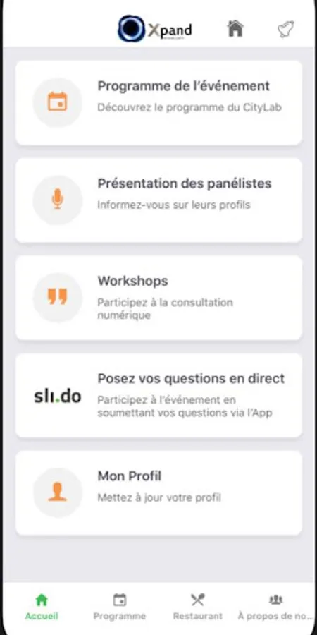 Xpand CityLab est une application mobile qui permet la gestion d'événements pour les événements Xpand. L'application contient des dispositions pour les questionnaires, les questions, l'affichage des partenaires, le calendrier des événements, la liste des intervenants et même des éléments de menu.