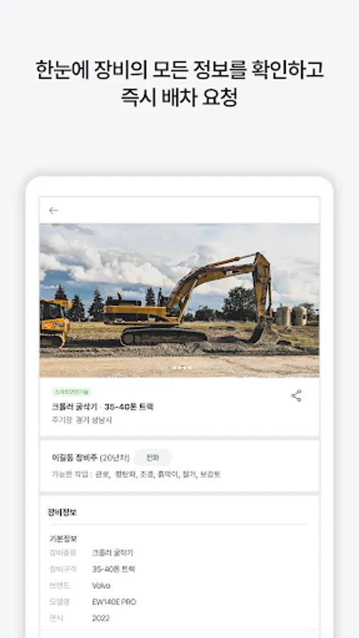 ▷ You can check equipment information at a glance and request immediate dispatch to equipment.