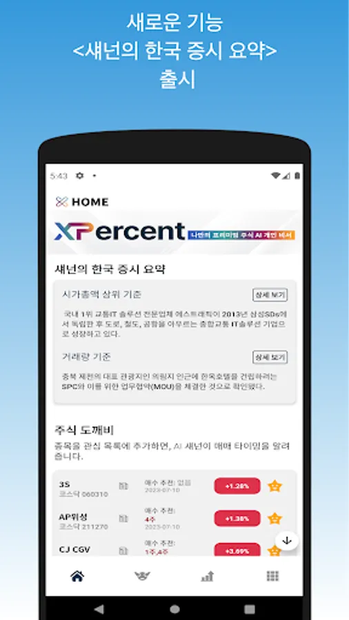 XPercent is an AI-based model that selects and recommends rising stocks to predict stock prices.