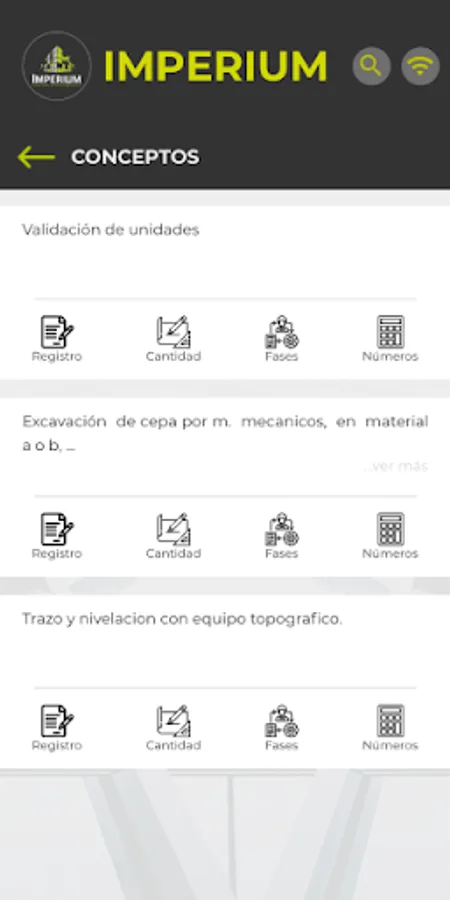 Functionalities for adequate control and monitoring in the construction process: Profiling of users and entry permits to the application, work program, concept catalog, critical path, online photographic reports, control of visits by the supervision team, georeferencing of the photographic record , control of budgets vs volumes of works executed, control of materials, budgets and consumption of materials, monitoring of billing information, administration module, strategic and operational reports, subcontracts module, Control of personnel on site, Purchase planning, Control of Inventory of materials, Control of machinery (Control of odometers, alerts for services), Documentary module of the work (Minutes, permits, among others), work log with authorizations.