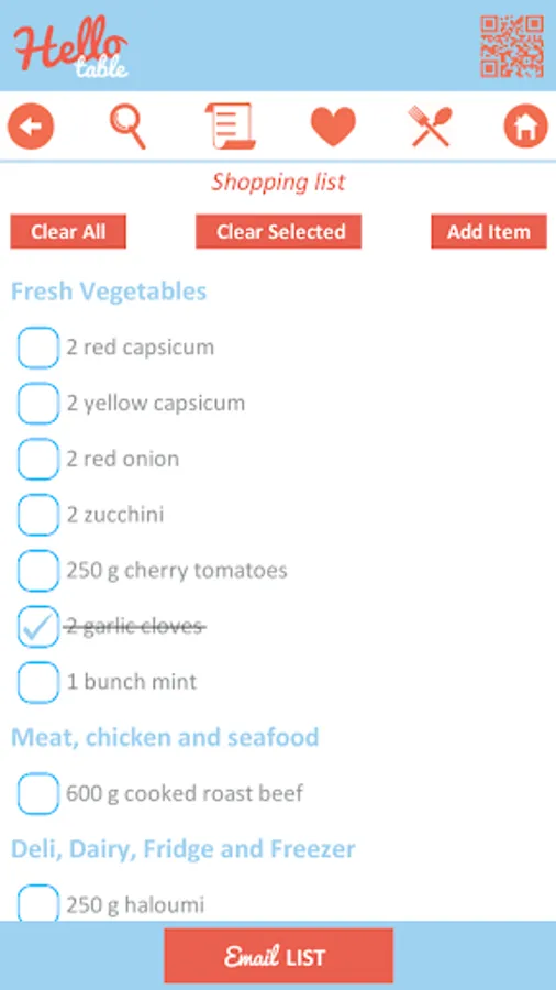 In an effort to make your life simpler, Hello Table helps you plan and cook your meals, creating a shopping list from recipes in the Summer TABLE cookbook. Every recipe has a code - a quick scan generates a shopping list for that recipe on your phone. You can then cross off the items you already have and go shopping.