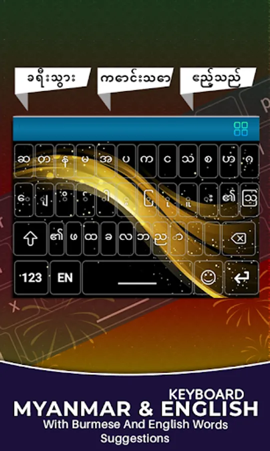 Myanmar to English keyboard has more than 100 background custom themes to set your favorite theme as keyboard background.