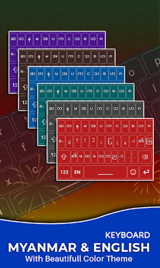 Is it true? You are looking for Burmese keyboard for your default mobile, Our development team decided that your smartphone should be stylish as you are smart. So never wait for myanmar keyboard for your device with beautiful neon themes.Search burmese keyboard zawgyi in Google play store and Switch English to Myanmar Keyboard.