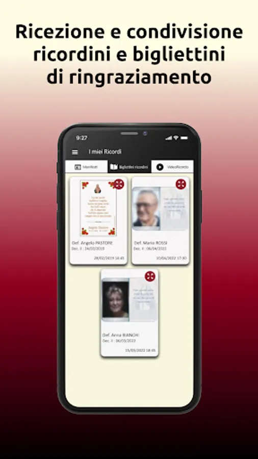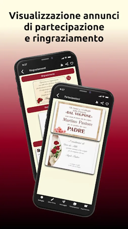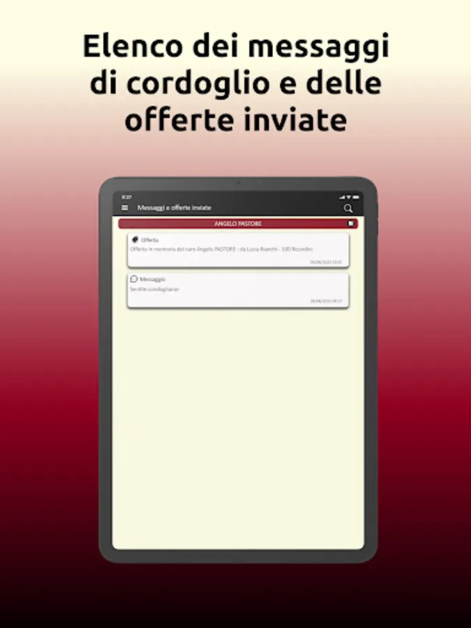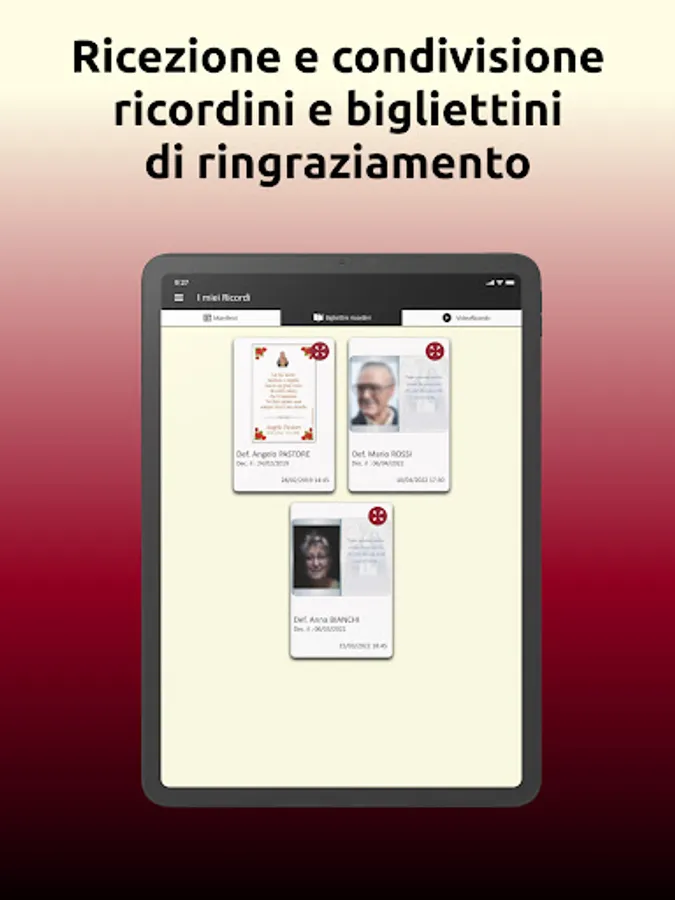 Our app is reliable and serious, it virtually accompanies you in the moment of mourning, offering you a wide range of services including a dedicated section where you can view all our partners and get in touch with them directly from your smartphone and Tablet!