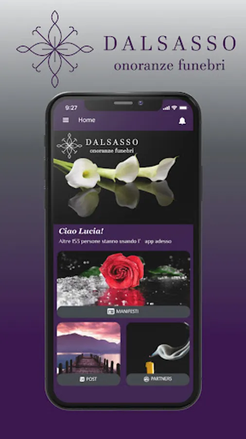 The Dalsasso Onoranze Funebri brand is synonymous with seriousness, professionalism and courtesy, at the service of families: with our mobile app you are always up to date on our news, you can communicate with the agency or send us documents privately simply and quickly, from anywhere and in total mobility.