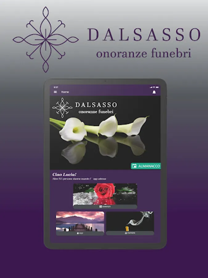 Created by the developers of the management software for funeral agencies Funeral Business Expert, the Dalsasso Onoranze Funebri mobile app guarantees a first-rate service in terms of media and technological innovation in the funeral sector, with the aim of cheering and comforting families living the difficult experience of mourning.