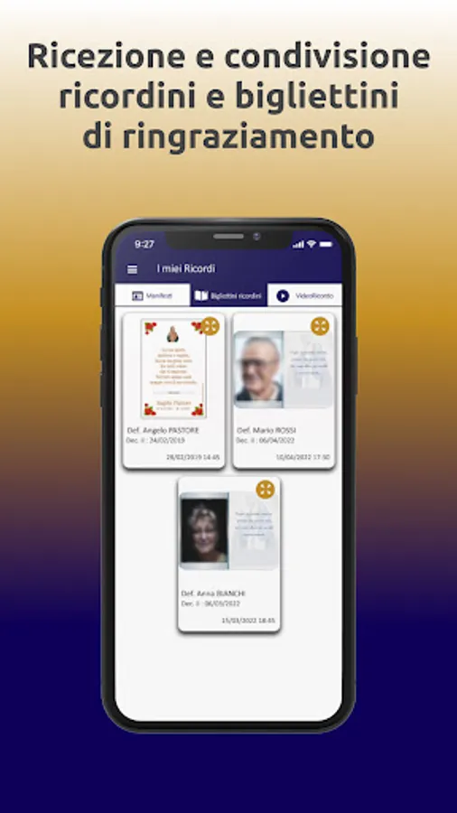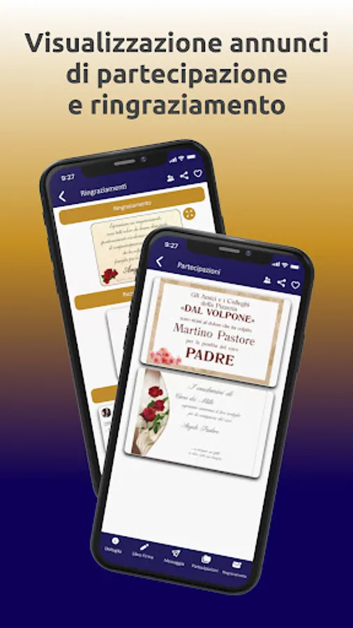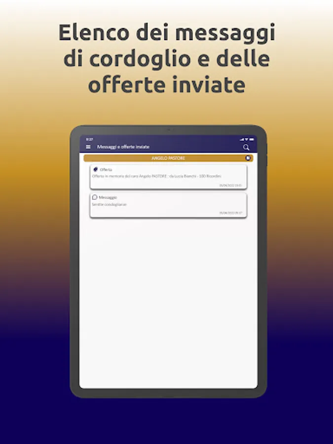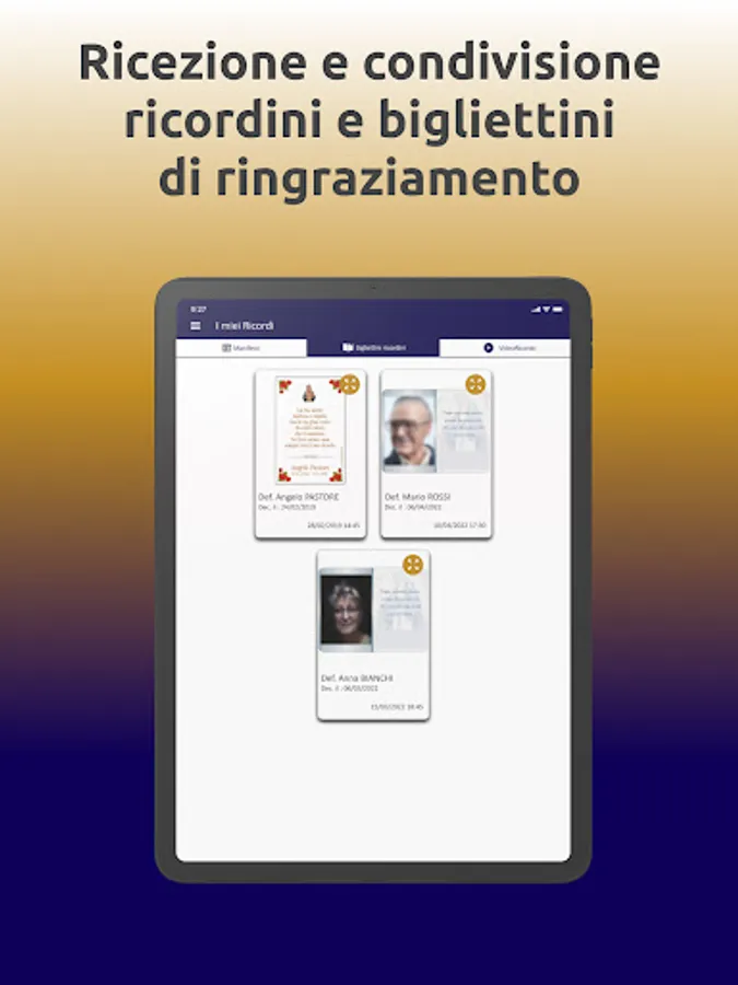 Our app is reliable and serious, it virtually accompanies you in the moment of mourning, offering you a wide range of services including a dedicated section where you can view all our partners and get in touch with them directly from your smartphone and Tablet!