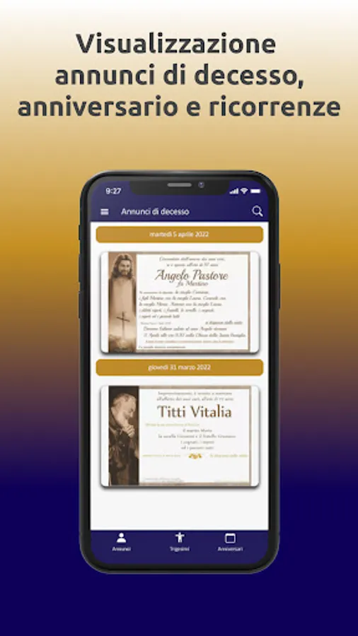 You will receive real-time notifications of who died today and you will be able to know all the useful information regarding the death and the funeral, with a wide possibility of interaction with the bereaved families and with our ITOF funeral agency, always at your service also in the field of media and technological innovation!