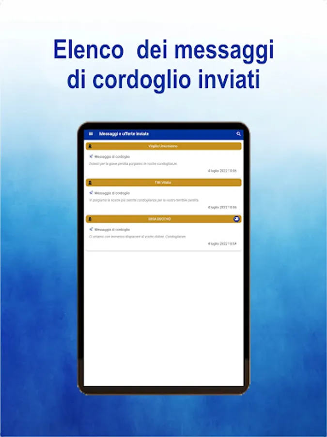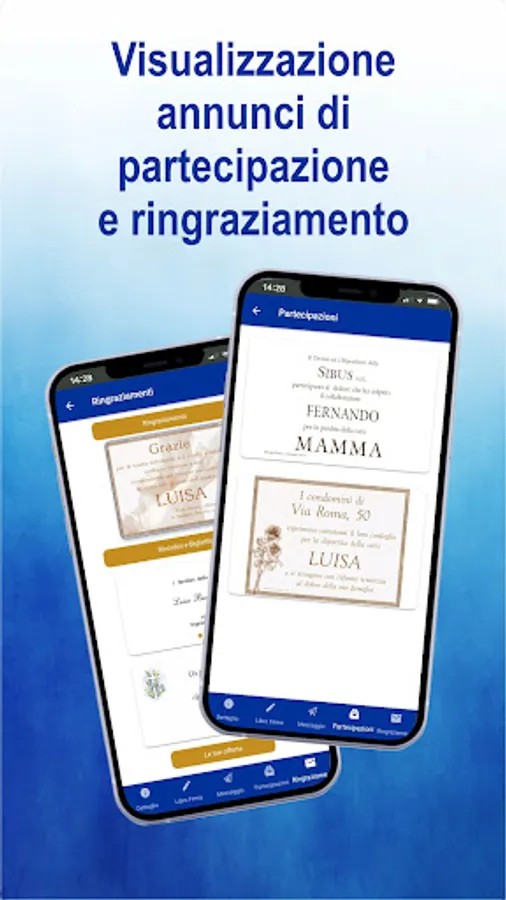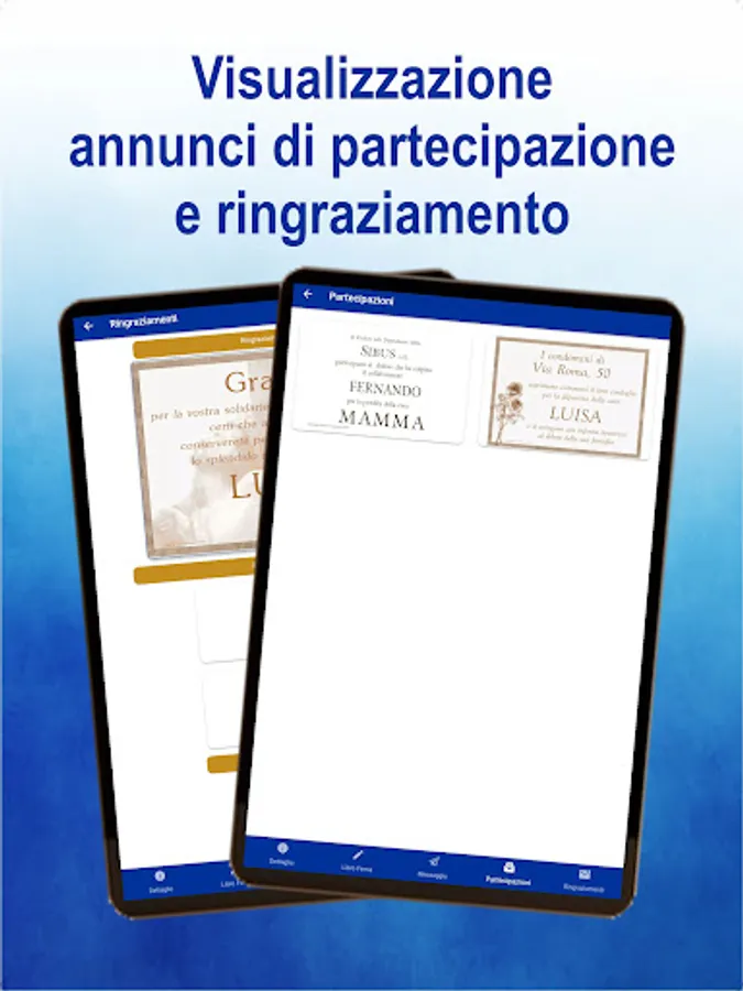 Our app is reliable and serious, it virtually accompanies you in the moment of grief, offering you a wide range of services including a dedicated section where you can view all our partners and get in touch with them directly from your smartphone and Tablet!