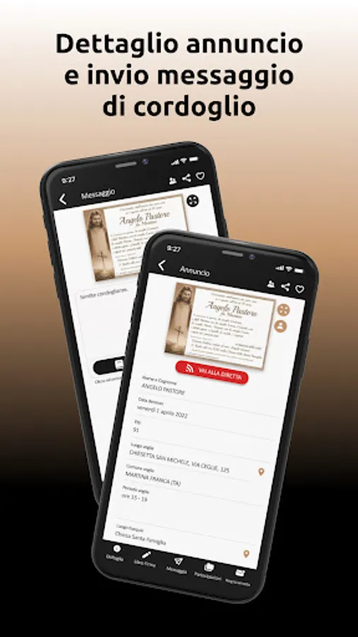 You will receive real-time notifications of who died today and you will be able to know all the useful information regarding the death and the funeral, with a wide possibility of interaction with the families affected by mourning and with our Polidoro funeral agency, always at your service also in the field of media and technological innovation!
