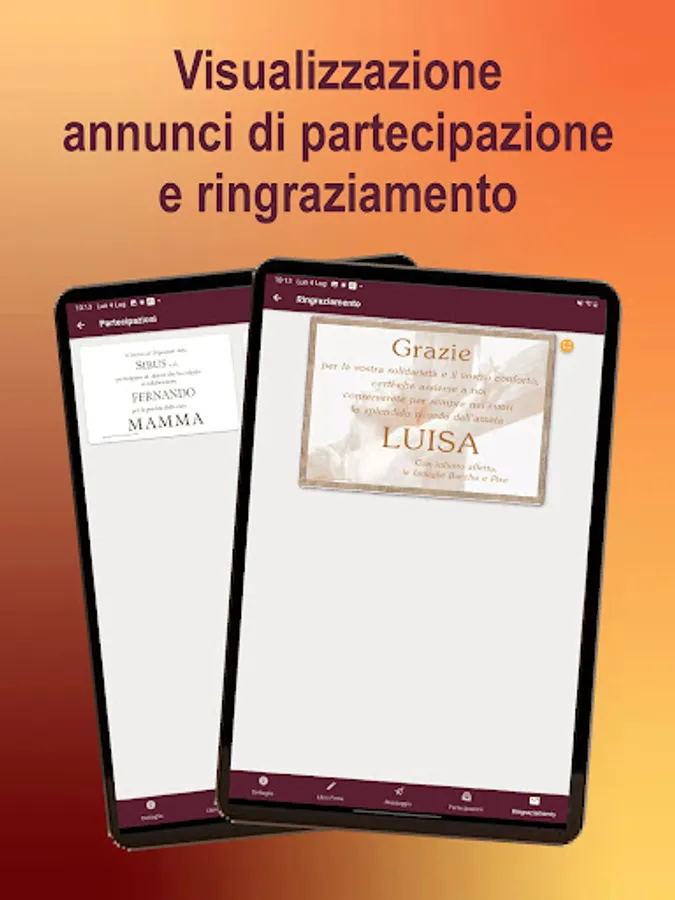 In the difficult moment of mourning, the Onoranze Funebri Claudio Tilli app makes everything easier and faster, making thanks for the funeral immediate and just a click away: it is important not to forget to express your gratitude to those who have shown affection and are combined with the feeling of emptiness and sadness for the death of a loved one.