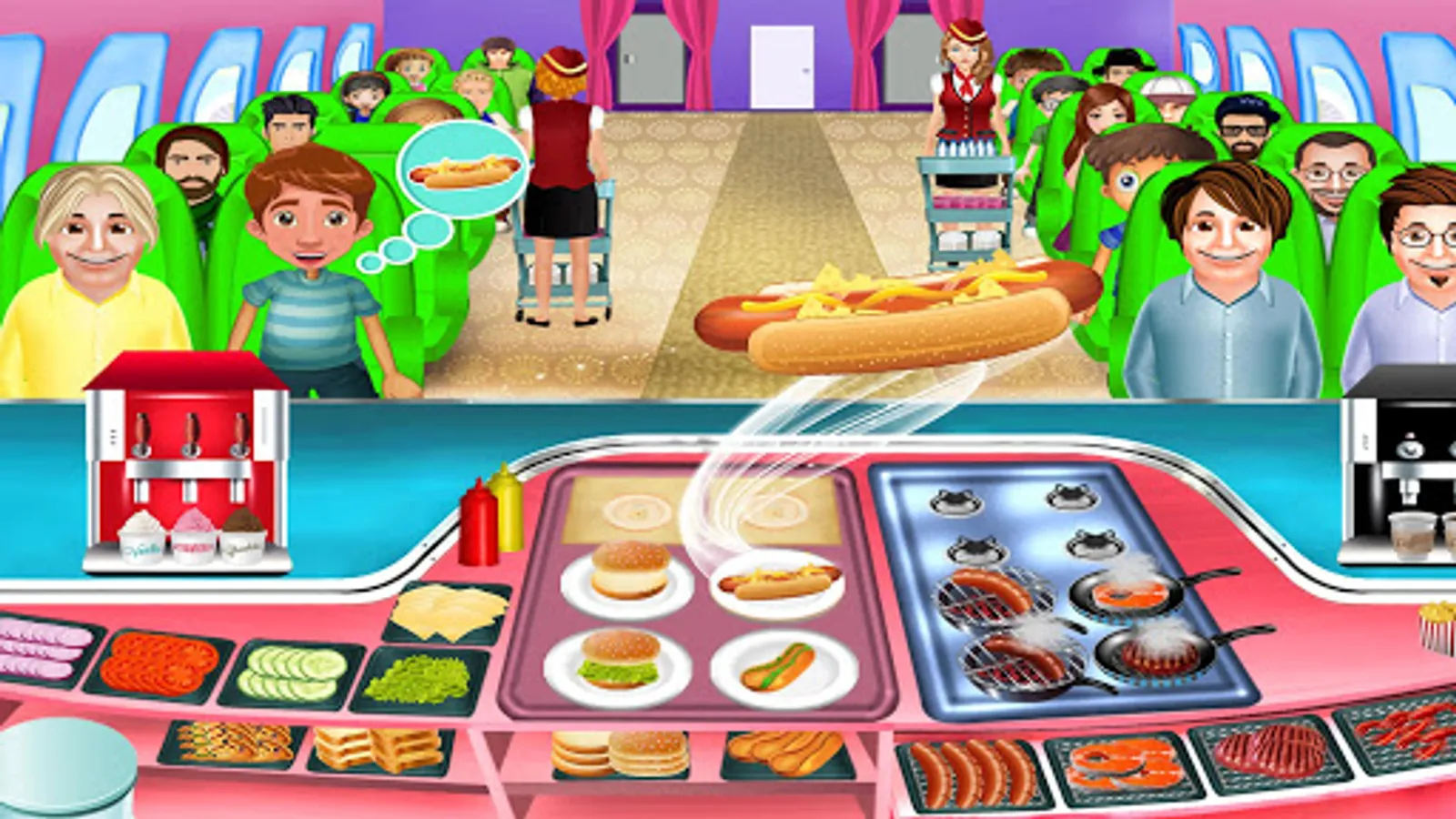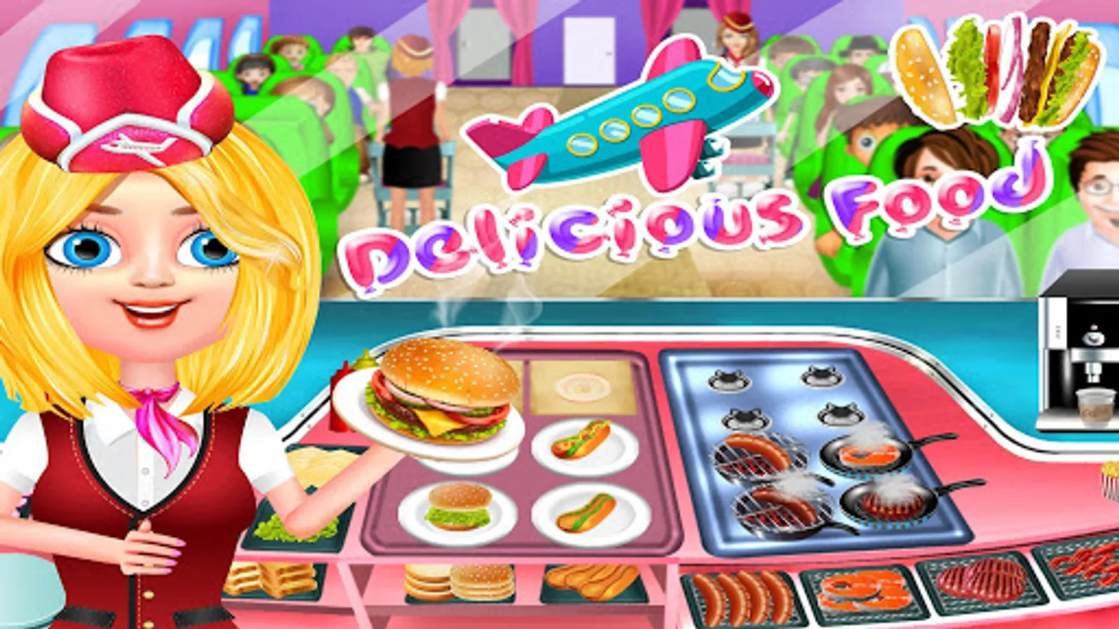 Are you ready to have fun in the food court of kitchen chef games? Airplane Kitchen food fever game is way to the new cooking adventure where you can learn how to make hamburger cheeseburger French-fries in the top food maker game. Have you ever wished of crazy cooking in the restaurant games? Chef Masters it is the right time to grab this opportunity to get the restaurant cooking fine experience in airplane kitchen food fever game. We are bringing a great platform for all the cooking games lovers to beat their fever of the free cooking games for girls. Impress your top restaurant customers with your amazing food cooking and food serving skills like the food serving games and free cooking games for girls. Tap as fast as you can in the top restaurant’s kitchen to cook the tasty and delicious food for food lovers.