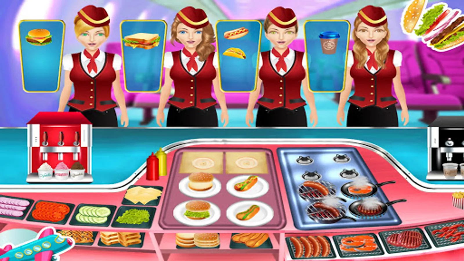 Dash to your restaurant’s kitchen to prepare healthy and delicious food for foodies. Give yourself an amazing cooking challenge in airplane cooking food fever game by paying in the crazy cooking restaurant by fulfilling your cooking simulation. Restaurant manager, your hungry customers are waiting in the queue serve them with the tasty burgers fries steaks & with healthy smoothies to increase your cooking skills and enjoy the restaurant kitchen adventure with your crazy cooking skills in one of the top kitchen games and restaurant games. Airplane kitchen food fever is the series of the free cooking game for girls where girls can better their cooking skills. Make your name in the top restaurants chefs by preparing tasty & delicious food for the top restaurant’s customers.