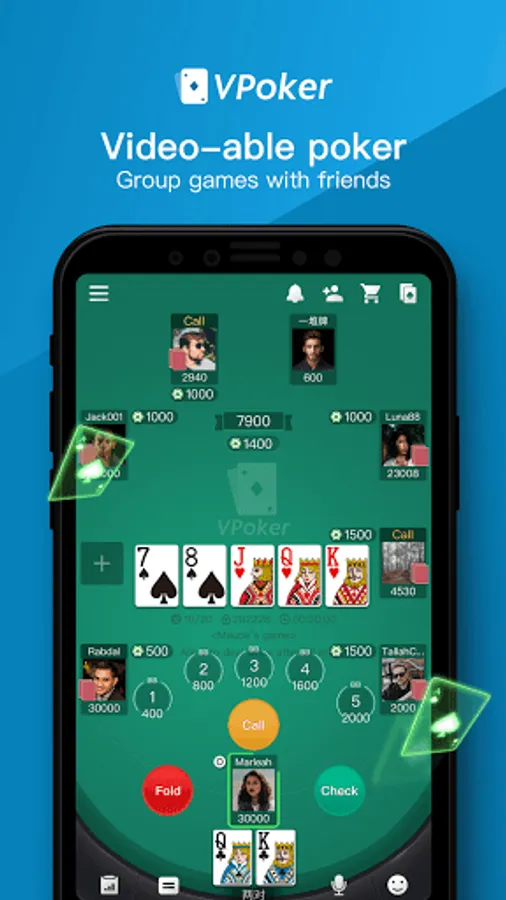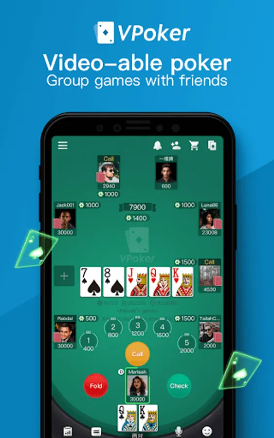 Download VPoker now, invite your friends and feel the passion of the game!