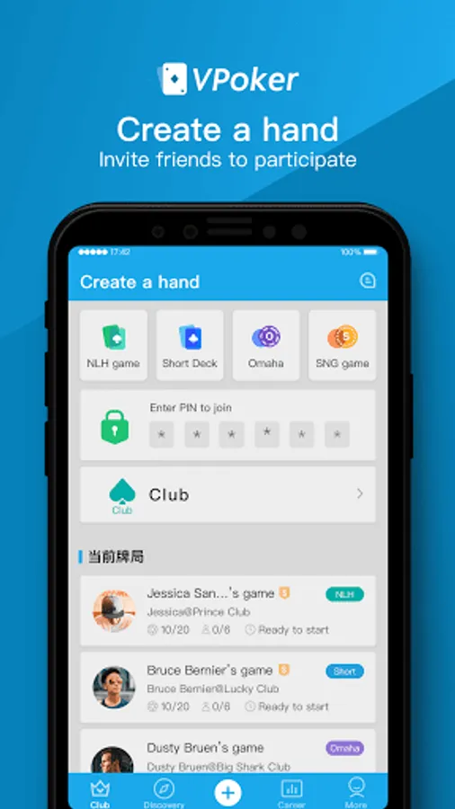 Omaha, Short Deck, Texas, SNG and other games for you to choose