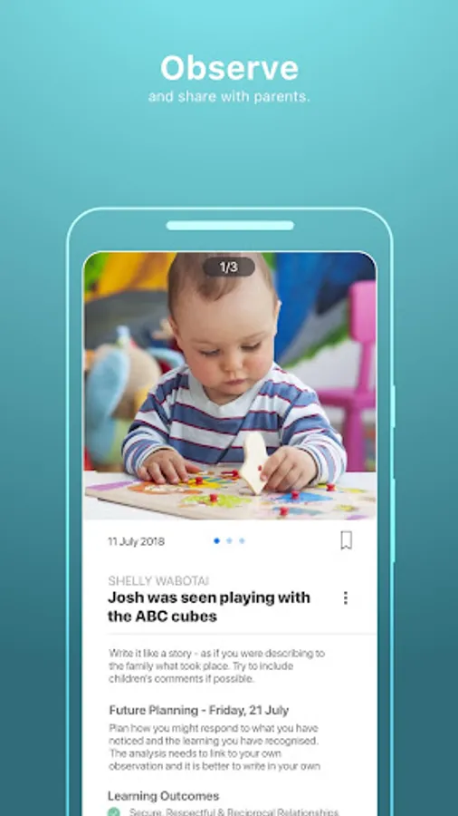 Don’t miss a moment of learning. Quickly capture an observation and save it as a draft. Share up to 16 photos at a time and quickly select multiple learning outcomes to create observations the way you want.