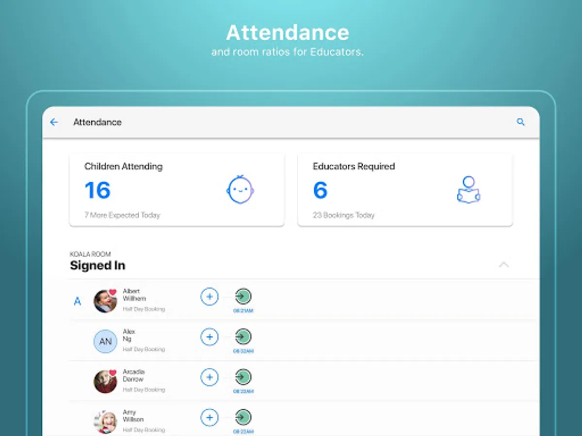 See how many children are signed and booked-in. Stay in ratio with a quick glance.