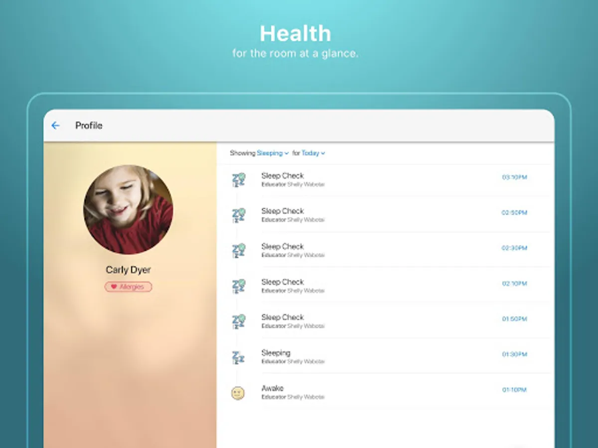 See the health of every child in your room at a glance. Timers will notify you of important events such as sleep and nappy checks.