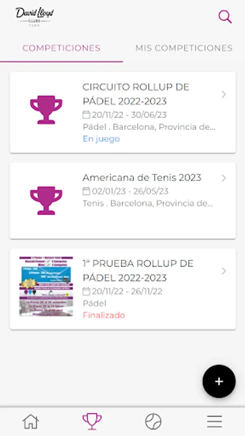 Follow our leagues and social paddle tennis and tennis tournaments of the David Lloyd Club Turó. Have all the information at hand from the schedules, results, classifications, statistics in real time. If you wish you can: