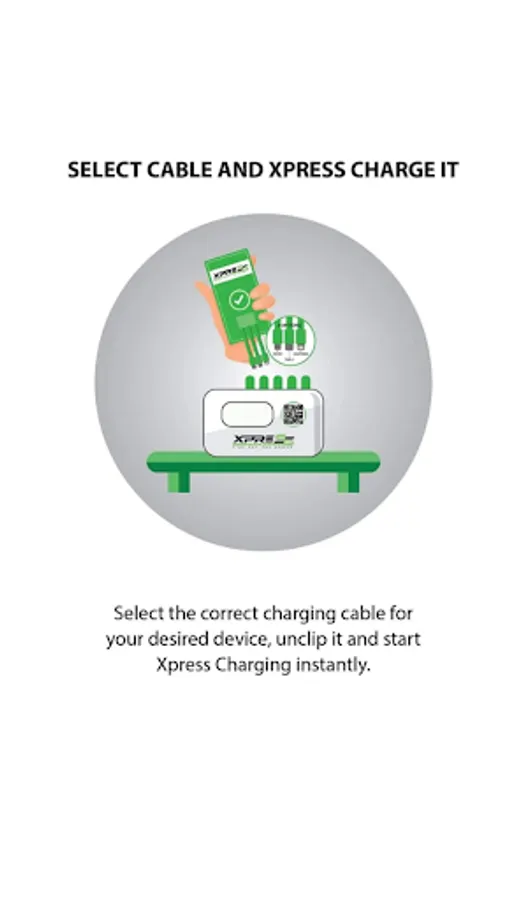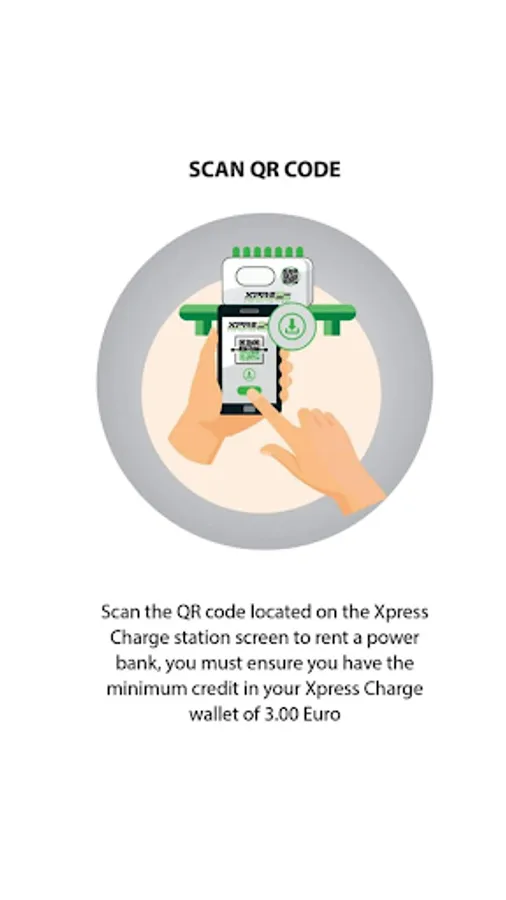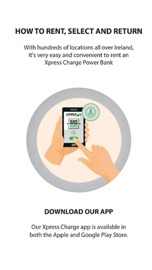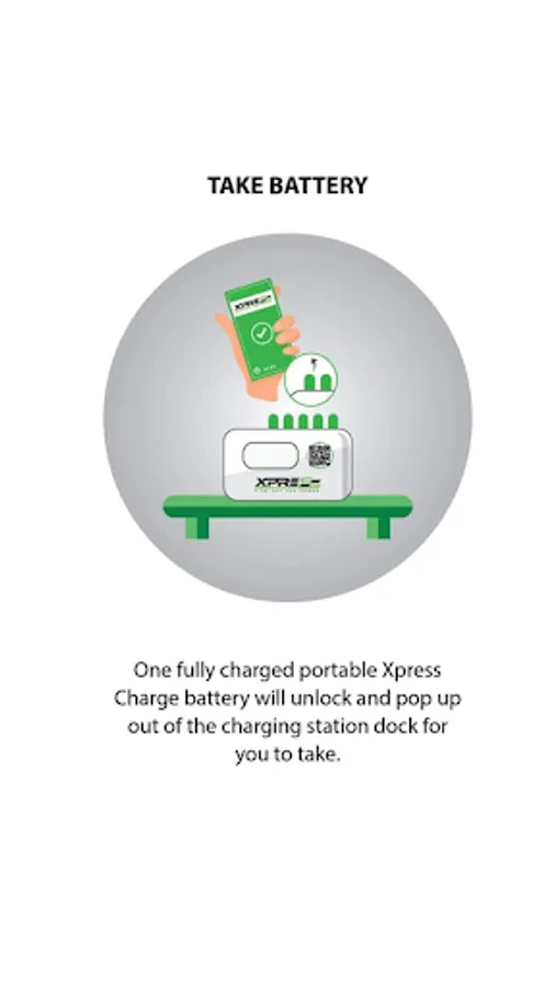 Download the Xpress Charge app. log on then scan the QR again, one fully charged power bank will pop up out of the PBR station..