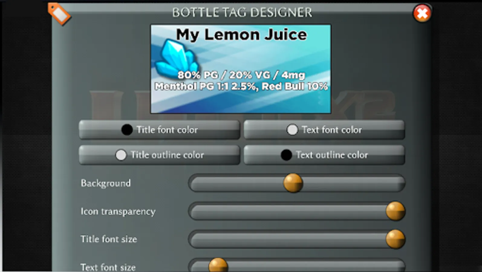 Let Liquix automatically design bottle tags for your recipes with the included, easy-to-use but powerful bottle tag designer.