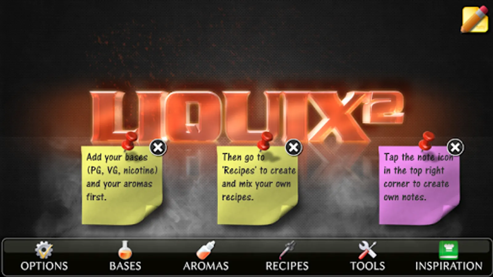 Notes for users of the previous version: because we reprogrammed Liquix from scratch and completely revised it is unfortunately not possible to transfer the recipes of the old version into the new one. Due to the many new functions and improved recipe management, the upgrade is still worthwhile for all vapers!