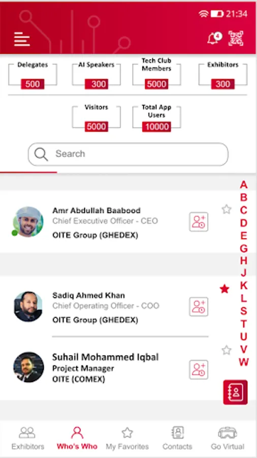 Exhibitors and Tech Club Members to search and connect with community, make them contacts and start chatting, emailing and calling to explore business opportunities.