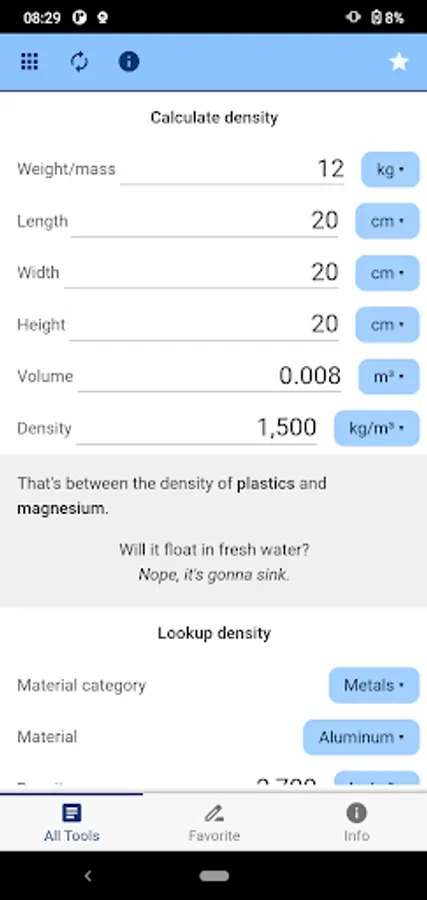 - Volume to Mass