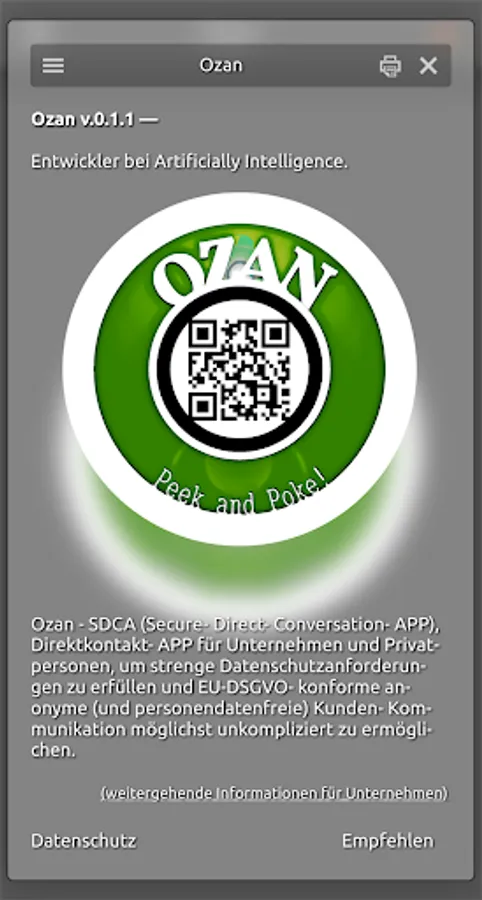 You can contact me directly via my SDCA (Secure Direct Conversation App) in order to meet strict data protection requirements and to ensure EU-DSGVO-compliant anonymous (and personal data-free) customer communication as easily as possible.