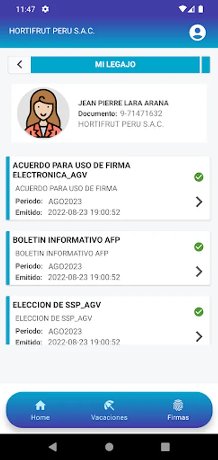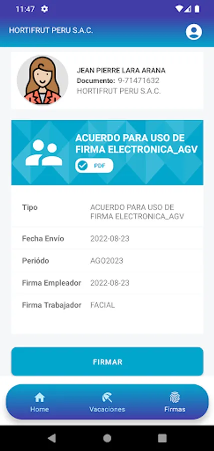 It has the functionality of signing digital documents, these signatures have the same legal value as a handwritten signature since it has integration with RENIEC to perform facial recognition.