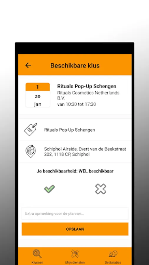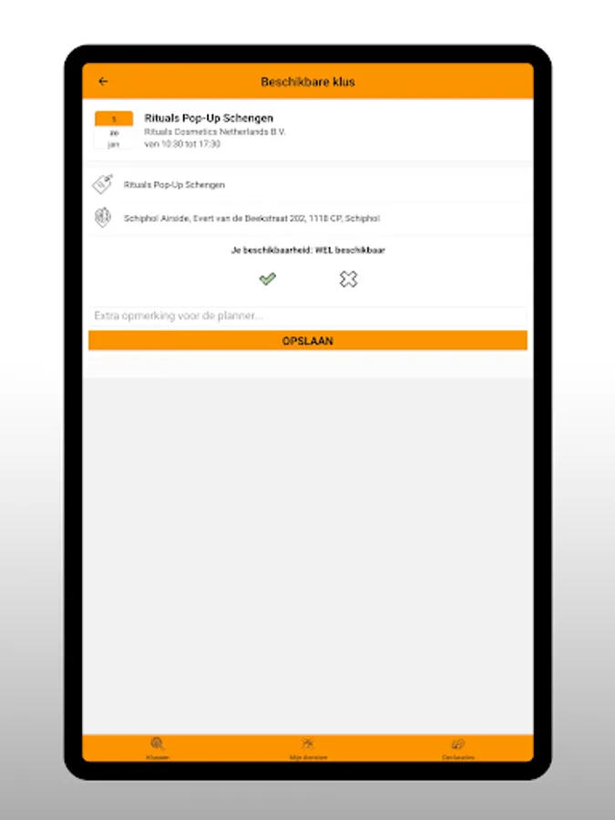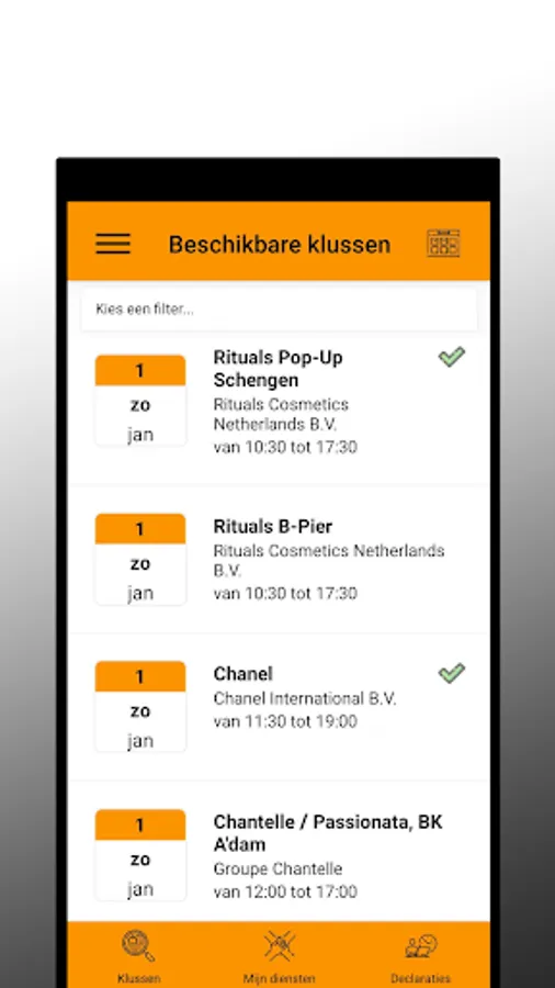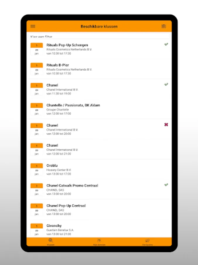 In our app you indicate when, where and for whom you want to work or which training courses you want to follow from our Beauty Academy. You can find the planned days in your roster (and calendar if you synchronize them) and you declare your hours worked and costs incurred. All information is available for each order.