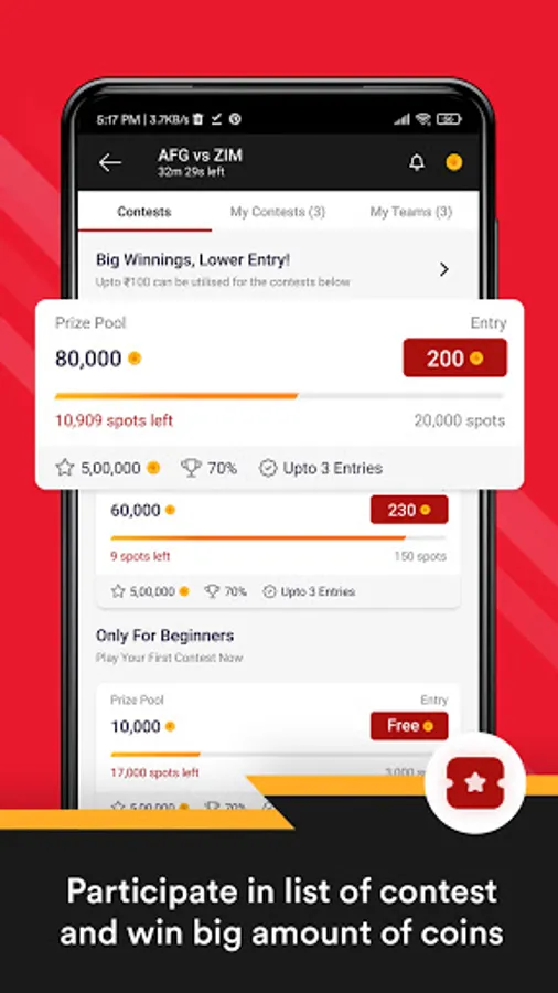 Create fantasy cricket team and compete one on one with the cricket lovers across the globe. Win against them and win maximum coins.