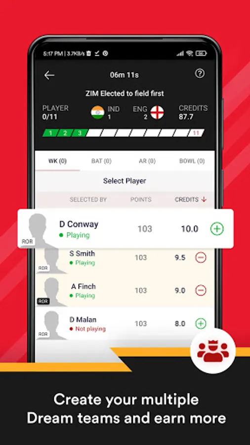 Pick your favourite 11 cricketers from both the teams at are playing in an upcoming match to form your own Fantasy Team for free. Live the dream of owning a cricket team.