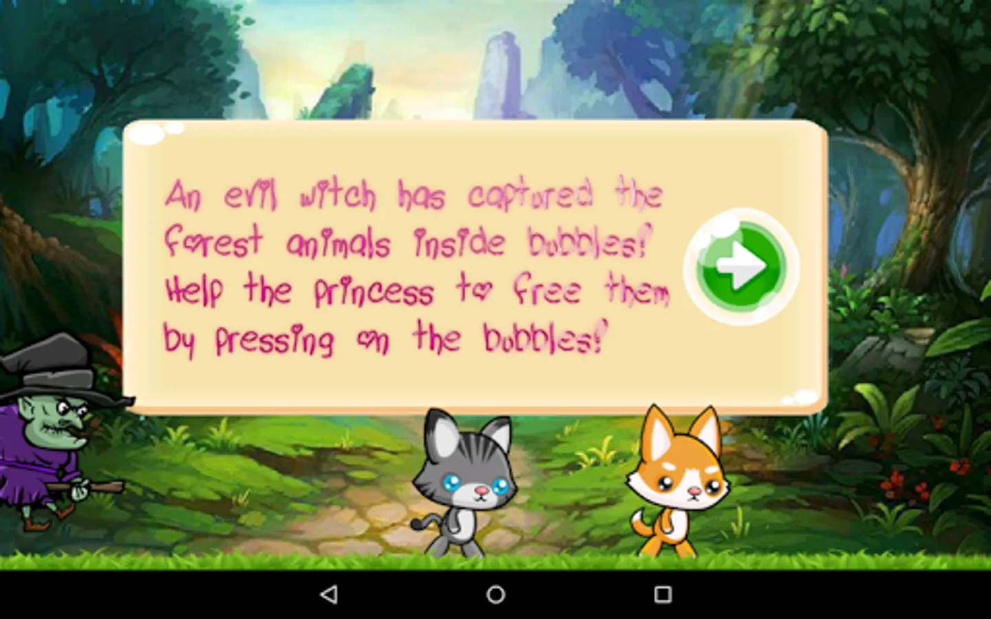 An evil witch has captured all the animals from the forest and put them into bubbles!