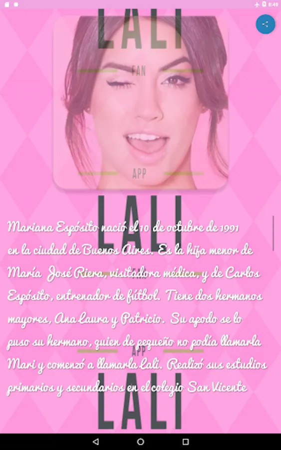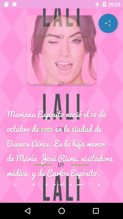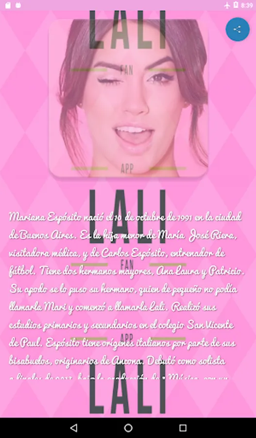 * It's an unofficial app for Lali Esposito Information, it is not authorized or created by the original creator.