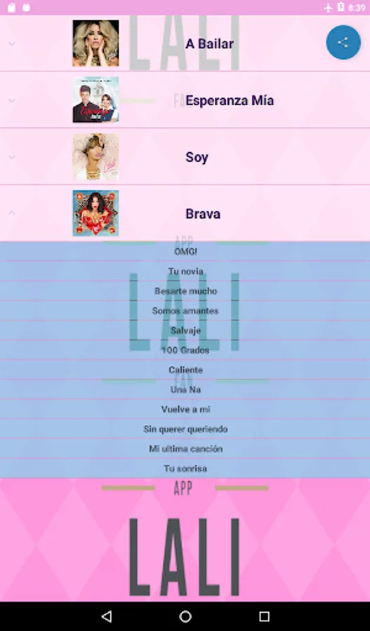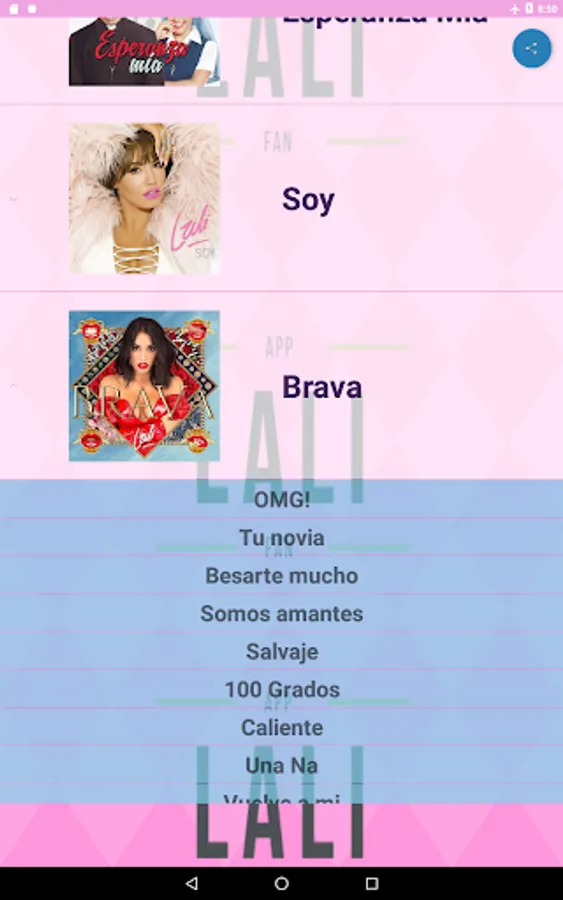 - The complete lyrics of Lali Esposito, including all his albums (Brava included).