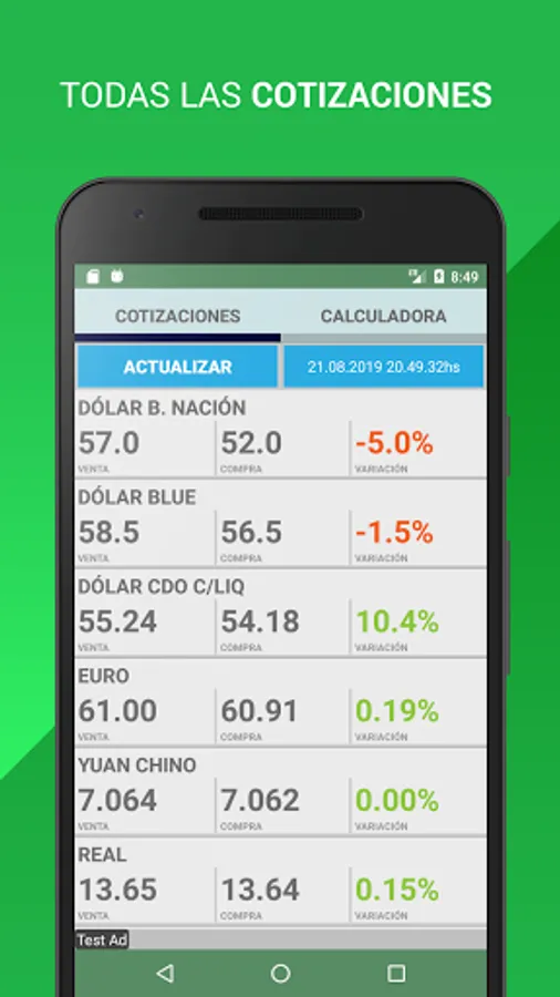 If you need to know the different quotes of the blue dollar, the official dollar, the euro, and more, this app is for you!