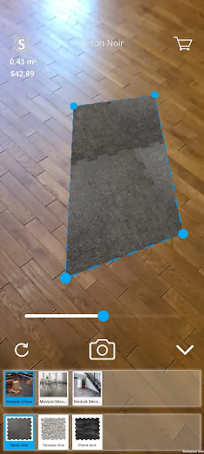 Browse an extensive catalog of floor tiles, hardwood and laminated timber floorboards, slabs, and other flooring products that are available in your area. Instantly try flooring ideas from the catalog using augmented reality. This app will accurately detect the floor of your room and overlay the selected flooring product, letting you instantly see exactly how your floor renovation will look when complete.