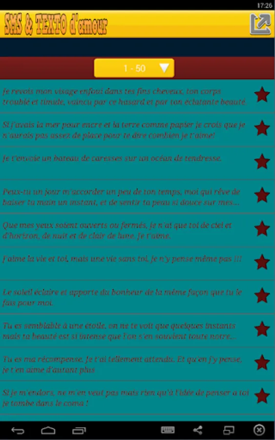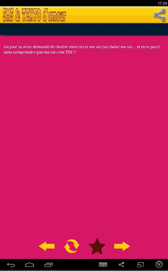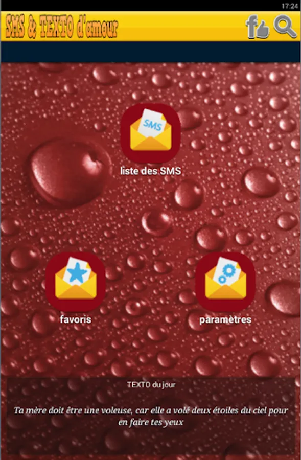 Through application, you will not need to look for love SMS to express your feelings to the person you love that when you open the application, you will find a list of messages to choose what you feel it express your feelings ..