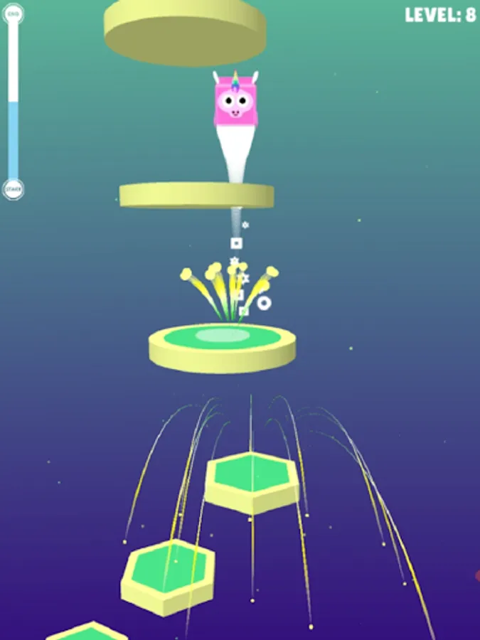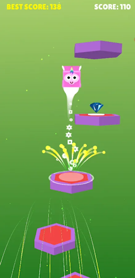 The goal is to make the player jump over higher platforms and reach the highest platform to complete the level, collect coins and gems to unlocks new cool characters.