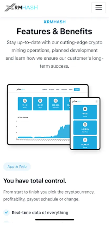 The smartest & safest approach to Crypto Mining, The convenience and flexibility of cloud computing with the upside of asset ownership. State-of-the-art fully managed crypto mining equipment with long-term profitability.