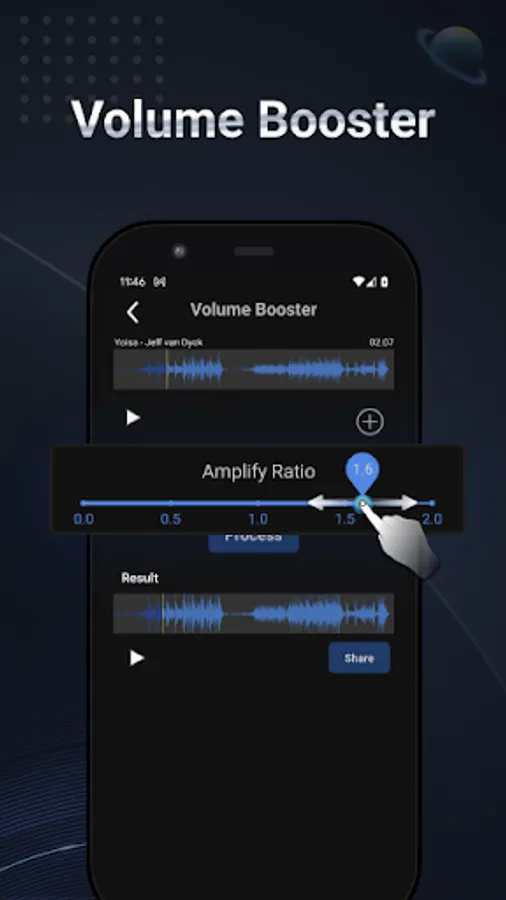 • Volume Booster: Adjust amplify ratio to boost your sound volume up to 200% or down to 10%.