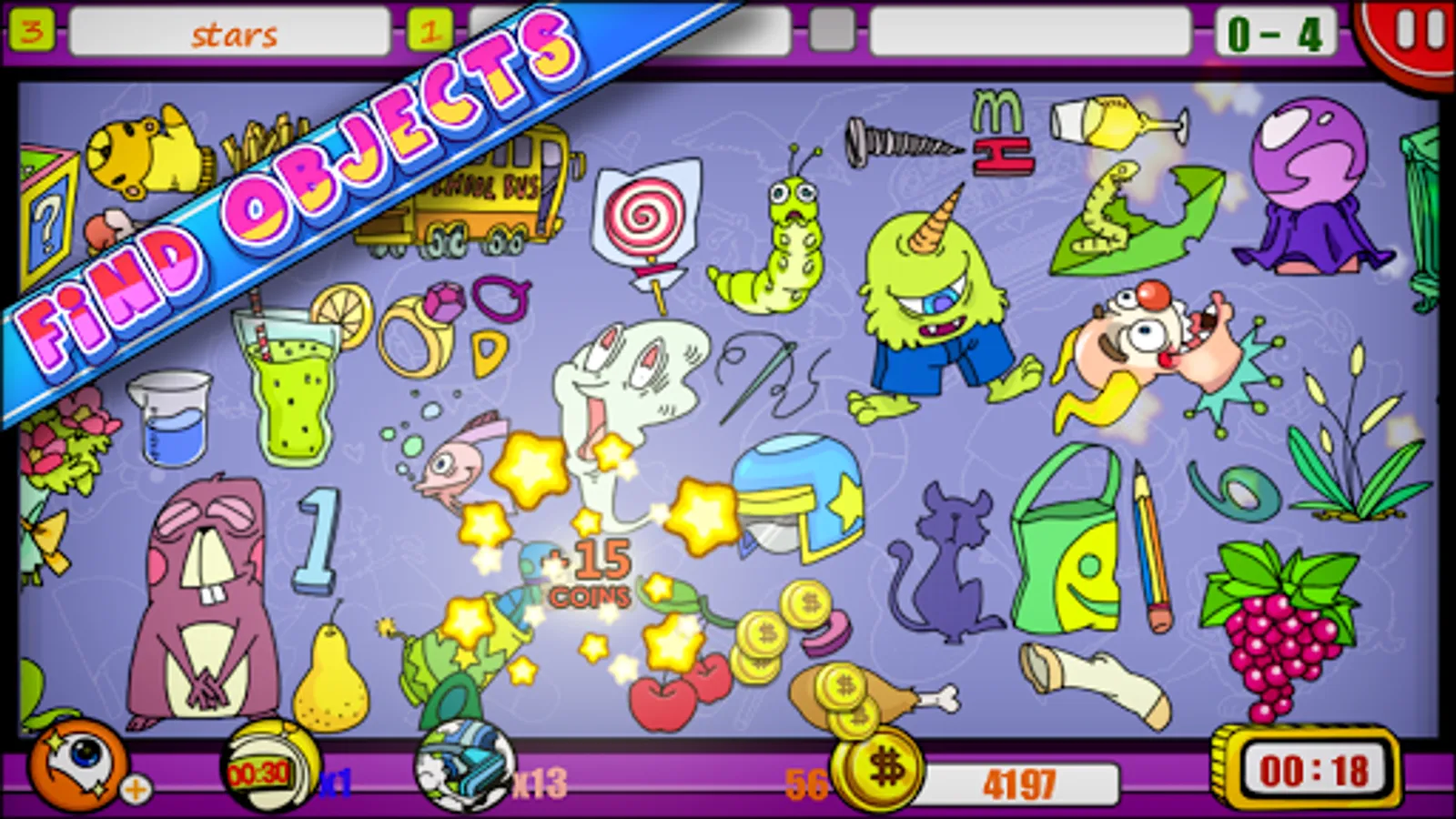 Searching for hidden objects is more immersive than ever in Find Objects! Can you find all of the hidden objects? It's like hide and seek with items that seem to be really hard to be found. Peel away at our special scenes with an exclusive parallax scrolling mechanic for a groundbreaking level of immersion. You have to look for things that seem invisible!