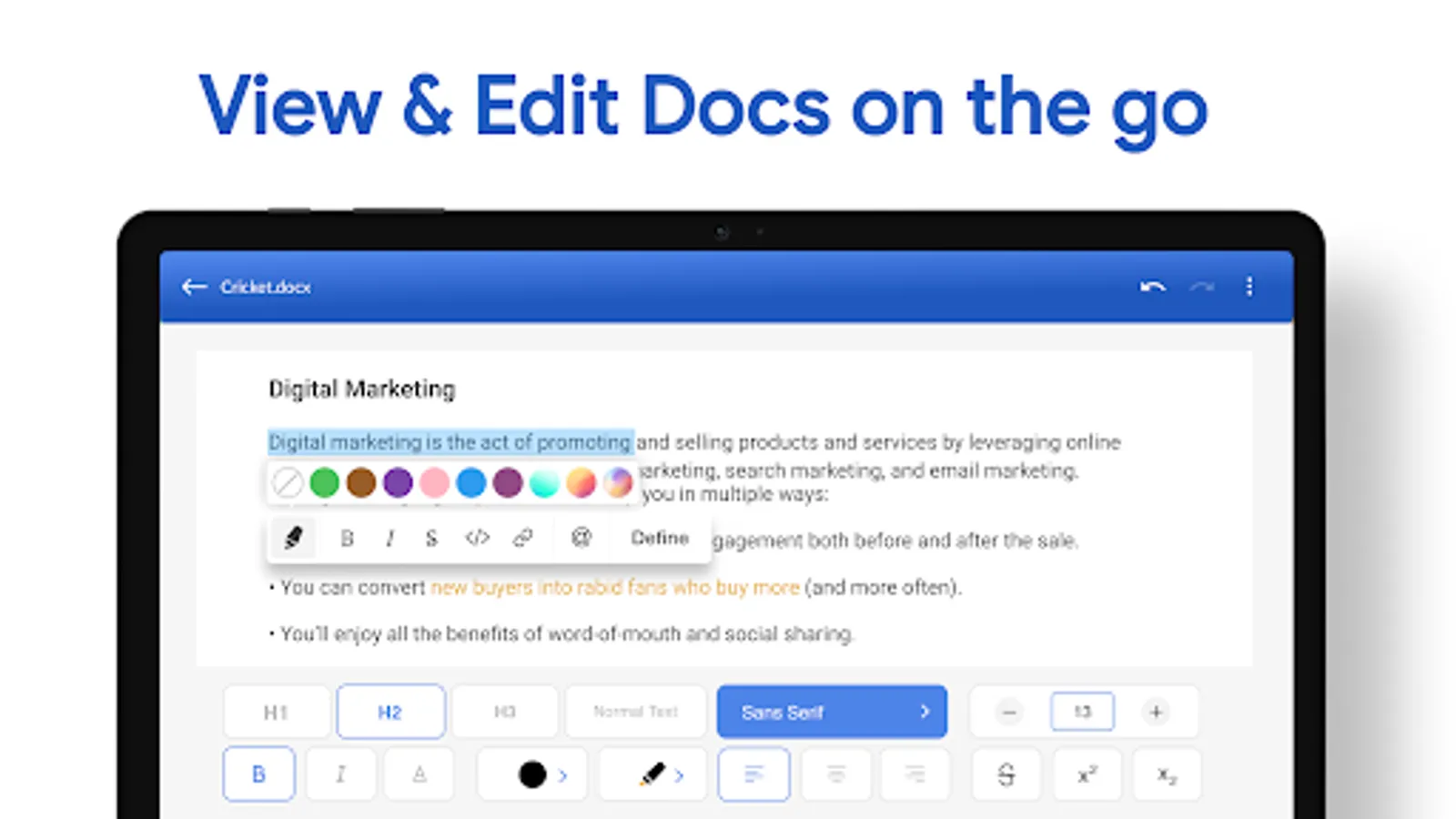 The word editor enables you to edit word, docx, doc, office, ppt, excel files. You can also view edit history and track all changes related to office tools. This is a perfect office tool that you need for managing your day to day tasks in word documents.