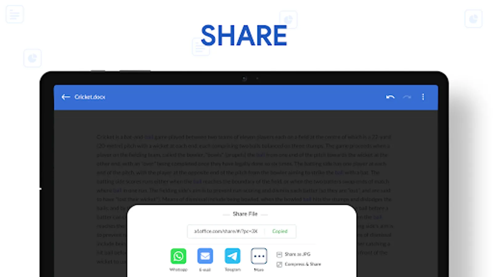 Word office reader & viewer can be easily used to share all file & formats of word, excel, pdf, ppt with your groups in office and outside. You can tag people where you need help to get the work done directly on your office word document