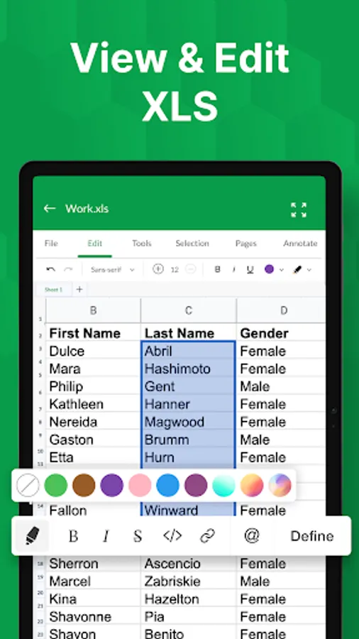 The XLSX Viewer: XLS reader & Sheets editor app is the most effective office productivity tool to read XLSX files and other related formats like CSV, XLSM, XLTM, XLTA, etc.