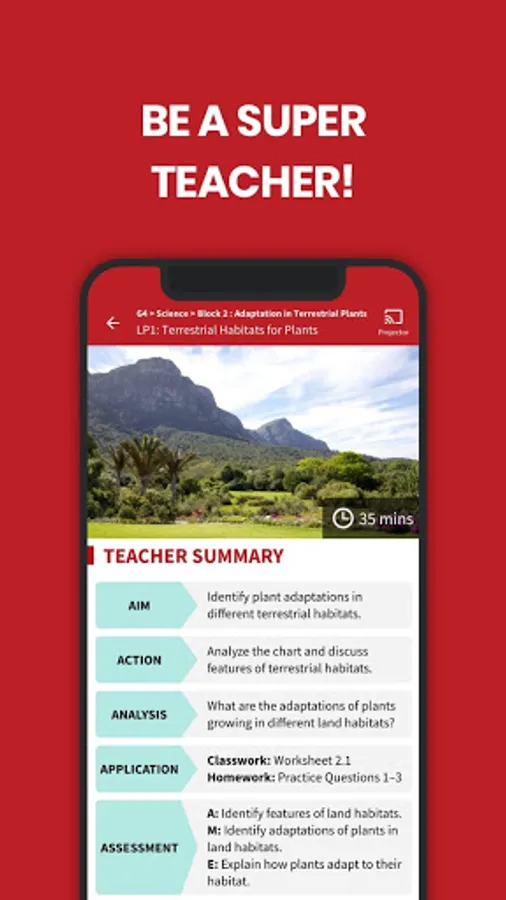 Simply choose the topic and lesson you are planning to teach, and go through the step-by-step instructions to get ready for your class. The SuperTeacher App is designed for you to easily prepare anytime, anywhere, with features like the following: