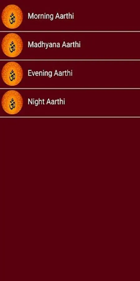 Morning Aarthi,Madhyana Aarthi,Evening Aarthi,Night Aarthi are the songs that you can find in this application.