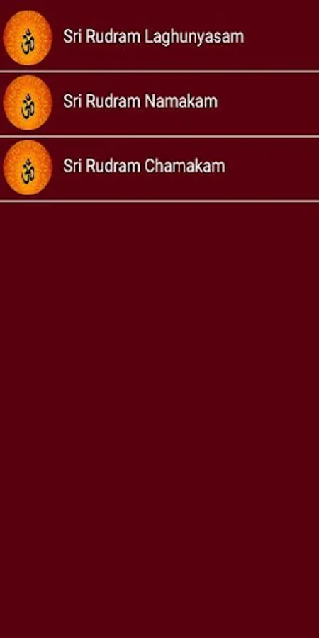 Sri Rudram Laghunyasam,Sri Rudram Namakam,Sri Rudram Chamakam and these are the 3 songs you can see in this application.